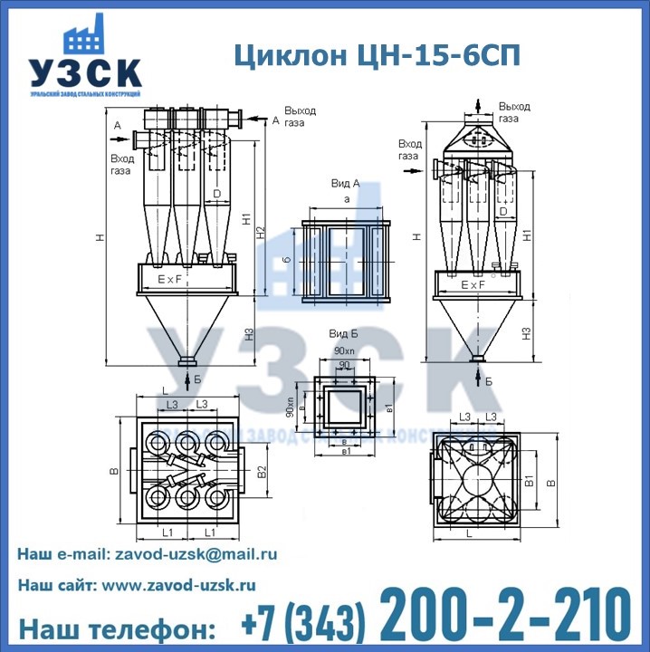 Завод «УЗСК» в Коврове предлагает большой выбор циклонов ЦН-15-900×6СП и прочих устройств, полностью укомплектованных и готовых к эксплуатации. Мы гарантируем соответствие оборудования всем требованиям ГОСТ и ТУ, износостойкость и высокую производительность предлагаемого оборудования. Уральский Завод Стальных Конструкций изготавливает и продает надежное, эффективное и производительное оборудование, имеющее длительную гарантию и большой эксплуатационный ресурс. Если требуется изготовить циклон нестандартных размеров, то такой вариант выполнения заказа тоже предусмотрен, так как предприятие имеет собственные производственные площади и надежных поставщиков. На все поставляемое или производимое оборудование имеются чертежи и прочая техническая документация. Заказать и купить циклоны или прочее оборудование высокого качества и по доступной цене можно через наш сайт или по указанному в разделе «Контакты» телефону.