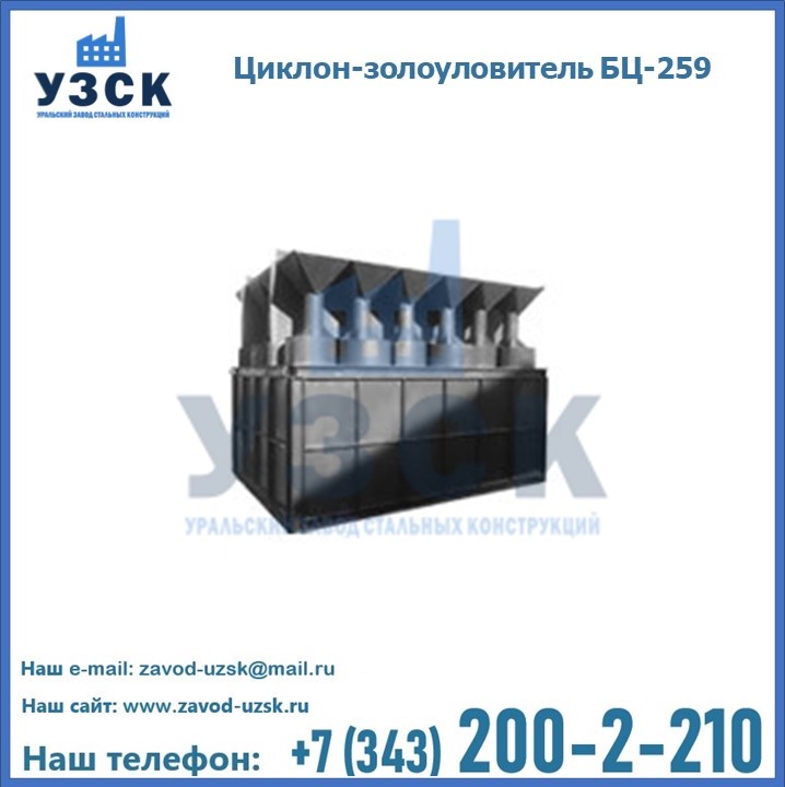 Если вы планируете купить то или иное оборудование, например, циклоны-золоуловители БЦ-259, то рекомендуем заказать данный товар на сайте УЗСК. Мы производим и реализуем продукцию высокого качества по приемлемой цене. Эксперты Уральского Завода Стальных Конструкций в Коврове проконсультируют вас по всем вопросам, помогут сделать выбор и оформить заказ без лишних временных затрат. Мы гарантируем соответствие нашей продукции всем требованиям ГОСТ и ТУ, а также износостойкость и высокую производительность предлагаемого оборудования. Если требуется изготовить циклон нестандартных размеров, то такой вариант выполнения заказа тоже предусмотрен, так как предприятие имеет собственные производственные площади и надежных поставщиков. На все поставляемое или производимое оборудование имеются чертежи и прочая техническая документация. Заказать и купить циклоны или прочее оборудование высокого качества и по доступной цене можно через наш сайт или по указанному в разделе «Контакты» телефону.