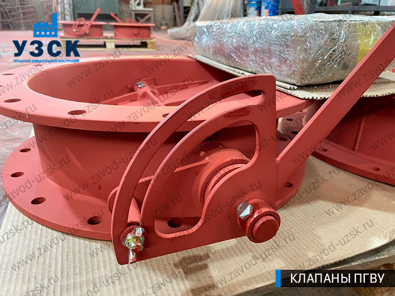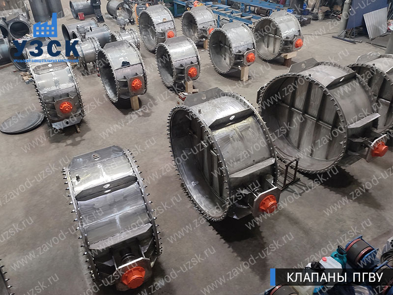 Круглый клапан ПГВУ представляет собой участок трубы, оборудованный изнутри створками. Шибер ПГВУ повторяет геометрию прохода. Для изготовления круглых газоплотных клапанов используются устойчивые к коррозиям и температурным воздействиям материалы (нержавеющая сталь, низколегированная сталь с АКП).