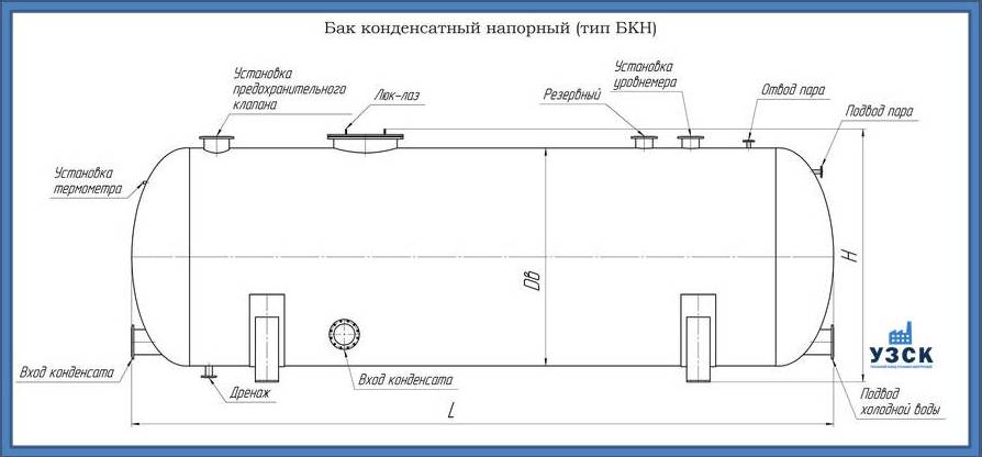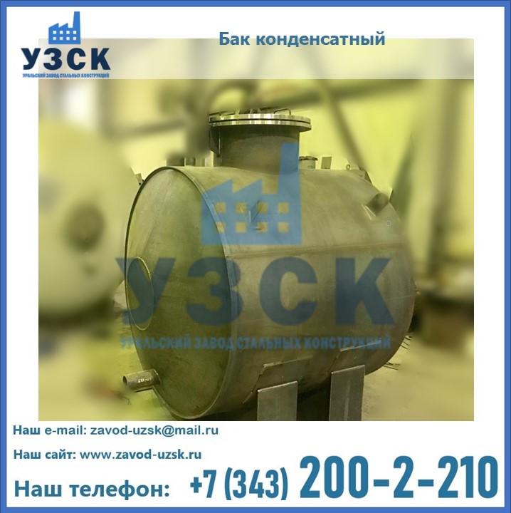 Многие заказчики стараются конденсатные баки купить по выгодной цене в компании «УЗСК» в Коврове. Причин несколько. Производитель поставляет емкости с полным комплектом лестниц, площадок обслуживания. Бак после гидравлических испытаний покрывают специальной внутренней и наружной краской, накладывают теплоизоляцию или наваривают крепеж для навески минматов. Условия теплоизоляции согласуются с заказчиком.