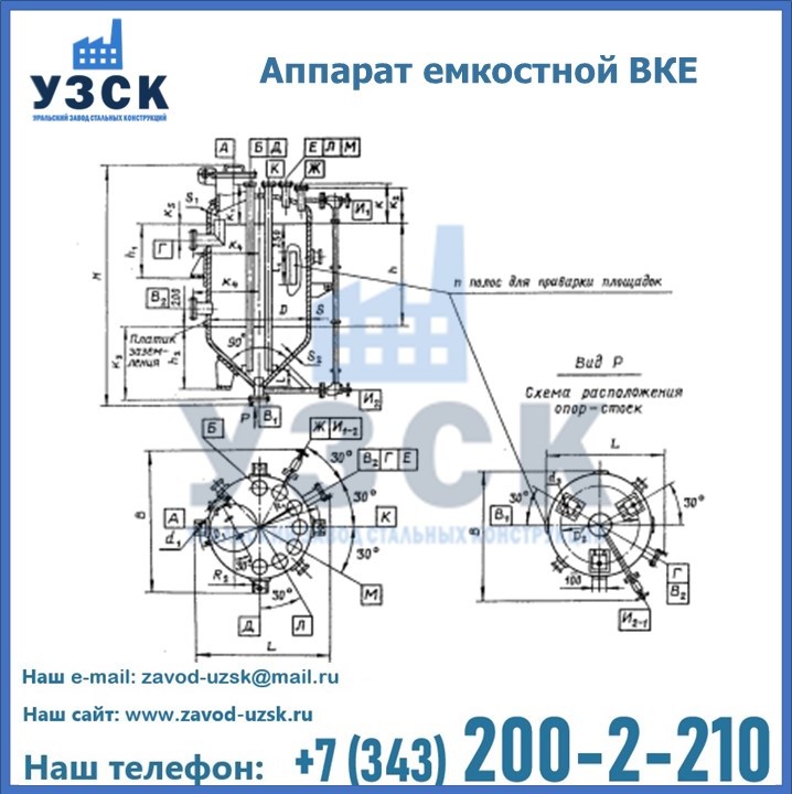 Емкостные аппараты ВКЭ представляют емкость с эллиптической крышей и коническим днищем. аппарат может использоваться в Коврове для приема и хранения жидкостей и взрыво- и пожароопасных веществ. Создаваемое давление не должно превышать 0,6; 1,0 МПа. Емкости ВКЭ выполняются как цельносварные. Используется марка стали, отвечающая степени агрессивности продукта и температуре эксплуатации.